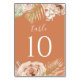 Boho blommigt handflatan och pampas terracotta bröllop bordsnumren