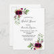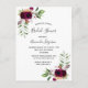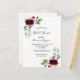 På framsidan: Dekorerad med mörk burgundblommor, ro, boho stil-fjädrar och grönt. En vit elegant bakgrund. Mallar för bridens uppgifter om namn och party. Namn och texten: Möhippan är skriven med ett handskrivet stil-skript, bugundy färgad brev. Bakåt: Vit bakgrund och ro.