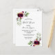 På framsidan: Dekorerad med mörk burgundblommor, ro, boho stil-fjädrar och grönt. En vit elegant bakgrund. Mallar för bridens uppgifter om namn och party. Namn och texten: Möhippan är skriven med ett handskrivet stil-skript, bugundy färgad brev. Bakåt: Vit bakgrund och ro.