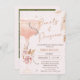 Boho Blommigt Pearls Prosecco QR Code Inbjudningskort för möhippan delikat och modernt vattenfärgat pärlor och åklagarmyndigheten inbjudningskort för möhippan med en bohemisk blommigt arrangemang med pampasgräs. Konstruktionen har också ett champagneglas, pärlor, en modern kalligrafi faux ro guld, QR-kod och foto på baksidan.
