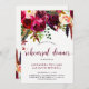 Den här inbjudan till bröllop-repetitionsmiddagen i trendig innehåller blommor med söt vattenfärg i klara skuggor av Marsala, vin, djup grönt, rött och lila och matchar modern typografi.