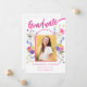 Gratulera till din dotters anmärkningsvärda akademiska examen med ett dynamiskt och charmerande Wildblomma Student Photo Arch Announcement Card. Designat för att fånga glädjen i tillfälle, har det här kortet en vit vildblomsbåge i fetstil av rosa, gult, lila och blått. Shock rosa kalligrafiskript i snyggt tillför en aning elegans och värme som kompletterar de pulserande, handmålade blomningarna perfekt. På kortets framsida visas på ett elegant sätt din dotters detaljer om namn och studenten i ett slående skript för shock rosa, medan baksidan belyser ytterligare information i modern kalligrafi. Med en lättförståelig fotomall kan du enkelt anpassa kortet med ett omhuldat foto av student och skapa en verkligt vänlig keepé av typen "one-of-a-natura". Det här kortet är ett fantastiskt erkännande för hennes kollegiala prestation - ett fantastiskt sätt att denna glädjande milstolpe med vänner och familj.