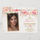 Feminine Quinceañera-inbjudan med vackra drömmare om blommigt med vattenfärg och faux guld tiara i rosa och guld