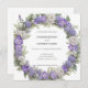 Den här bröllopsinbjudan visar en cirkelformad krans krona som skapats från intertwining lavender-blommor, eucalyptus löv, tryckt hortensia, myrtle löv och ivy löv. Utformningen återges i en unik lila och vit blommigt i stil på en pristinvit bakgrund. Dessa inbjudningar är unika och har en levande lila, violett nyans och vitt, kompletterat med den delikata torkade grönmannen. Utandningsluften krona är en central punkt som elegant omger inbjudan och anger tonen för en romantisk och spännande bröllop firande. I mitten av designen finns det ett dedikerat utrymme i form av en meddelandemall. Med några linjer text och typsnitt, namnen av bruden och brudgummen, och deras familjer, älskade inbjudan dem för att gå med dem att fira sin speciella bröllopsdag. Inbjudan innehåller information om t.ex. datum för bröllop, plats adress och annan relevant information i ett format som blandar klassiskt svartvitt med ett modernt tryck. De här bröllopsinbjudningarna kan vara personlig med ett utvalt meddelande, så att varje par kan lägga till sin unika beröring till det begränsada textutrymmet. Den övergripande konstruktionen fångar upp själva kärnan av elegans och frammanar en känsla av tidlös skönhet och förfinad charm. Kombinationen av andningsutandningen krona och den vita ryggdroppen skapar en häpnadsväckande visuell kontrast, medan de försiktigt utvalda blommorna och folien ger en aning av rustik och boho flair.