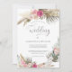 Bohemian Ro rosa och bröllopsinbjudan till blommigt av elfenbensfärgen. Anpassa den här eleganten med dina egna uppgifter för att göra den till din egen.