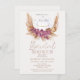 Boho Blommigt Weath Tea Party Inbjudningskort för möhippan Tea party inbjudningskort för möhippan, med en brun och lila blommigt boho arrangemang med ett litet pampasgräs och en vit tekruka. Den faux-guld-kalligrafrubriken är en bild som kan tas bort.