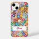 Boho-Blommönstrets Anpassningsbar iPhone 14 Fodral är söt och färglös med en reflexfläkt.