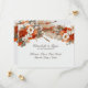 Varm, höstfärger av orange, brun, grön och korall, vetegräs, pompogräs, krysantemum och vita blommor, höstbröllop save the date-kort.