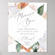 Bjud in gästerna att ta en favoritdryck med vårt charmiga skylt till mimosabar. Skylten på 11x14 för "mimosabar" har kalligrafiskrift med instruktioner eller beskrivning nedanför. Anpassa med namnet på ditt evenemang och/eller datum längst ner. Ett chic tillägg till möhippor, bröllop och brunches, vår mimosabarskylt är prydd med pastella persika- och salvia gröna akvarellblommor och botanisk grönska som matchar vår Boho Blooms-pappersvarukollektion för evenemang.