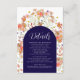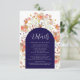 Denna boho höst rustika vildblommiga valv i marinblått och vitt bröllopsdetaljer bifogas kort med lättanvända mallar i elegant modern typsnittsskrift. Ett stilrent och användbart tillägg till din marinblåa bröllopsinbjudan, designad för att sömlöst komplettera den bohemiska charmen i din fest. Med handmålad akvarell vildblommeäng i varma, höstliga nyanser av bränt orange, terrakotta, lila, gul, korall, bränt umber, persika och mjuk rosa, ger detta kort en touch av elegans och nyckfullhet. De vackra bohemiska rustika höstblommorna skapar en förfinad men naturinspirerad estetik, medan den eleganta typsnittsskriften lägger till en modern kontrast. Designad med originalkonst av Catherine Sweetman,