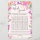 Gör bröllopsfesten rolig och interaktiv med detta boho blomster-tema word search-spel! Med romantiska bröllopsrelaterade ord är detta vackert designade aktivitetskort perfekt för att underhålla gästerna medan man firar den blivande bruden. Den mjuka akvarellblomsterkanten och den eleganta skriften lägger till en charmig touch till alla boho-, rustika eller trädgårdsbröllopsfester.