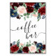 Sofistikerad akvarell blomsterkrans dusch-, födelsedags- eller mottagnings "Café Bar" skyltning med vinröd marsalröd och rosaton handmålad topp- och bottenkant med marinblå accentblommor utsmyckade med botaniska lagerblad och mörkrött. Från "Boho Bloom" kollektionen, denna layout inbegriper rika bohemiska vilda blommor med strålande blommor och eukalyptus grönska lövverk. För andra färger eller matchande produkter, besök JustFharryn Zazzle butik, eller kontakta designern, c/o Fharryn@yahoo.com. Med ensamrätt. #bohochic #zazzlemade