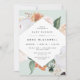 Den könsneutrala inbjudan till babydusch som blommigten har innehåller en diamantformad ram av vattenfärgblommor och löv i boho-ökeninspirerade skuggor av persika, vit, elfenben och grönt. Anpassa med din babyduschinformation.