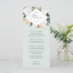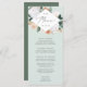 Menyn Boho chic blommigt bröllop har ett geometriskt inslag överst med datum för initialer och bröllop, inramat av en vattenfärg gräns av sage grönt botanical foliage och pastelljordtoner i ökeninspirerade blad av persikor, elfenben och vitt. Anpassa med menyalternativen under modern text. Designad att samordna med vår Boho Blooms bröllop och händelseinsamling.