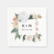 Boho chic bröllop napkins har en fyrkantig vattenfärg gräns av sage grönt botanical foliage och pastelljordtoner i persiko-, elfenben- och vita nyanser som formar initialer eller monogram och händelsemedatum i modern skrift. Designad att samordna med vår Boho Blooms bröllop och händelseinsamling.
