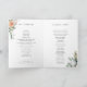 Designat att samordna med vår Boho Blooms-samling har dessa elegant-vikta bröllopsprogram en vattenfärgad botanisk grönt och pastellökeninspirerade blommor i persikor, vita och elfenben, placerade runt ett geometriskt centralt inslag. Anpassa framsidan med plats och datum för namn, bröllop. Lägg till din ceremoni och brudens sida-information till insidan och anpassa baksidan med ett anpassningsbar tack till dina gäster.