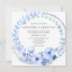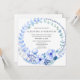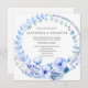 En blommigt bröllopsinbjudan med en stor blå vattenfärgsutandning av blommor, bär och löv. Om du planerar ett boho-, rustik- eller trädgårdsbröllop skulle den här blå blommigten inbjudan vara mycket lämplig.