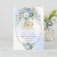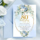 Boho Blue Floral Peony Gold Frame 80th Birthday Inbjudningar