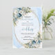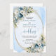 Set the tone for an unforgettable celebration with this elegant watercolor wedding invitation, beautifully designed with dusty blue florals, soft white peonies, and delicate eucalyptus