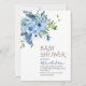Boho Blue Flowesr vattenfärgsbabydusch Inbjudningar