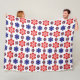 This fleece blanket features a beautiful colorful floral pattern of blue, purple and red stylized daisies against a white background; perfect for adding a touch of retro cuteness to your home.