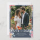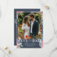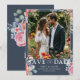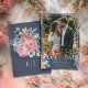 Lägg märke till din stora dag i stil med den här eleganten och det moderna Spara datumkortet. Med ditt favoritfoto på framsidan är det vackert förberett med originalfärgade blommigtar för vattenfärg - peachy rosa ros, delikata peonier, lavender sprigs och sage grönt eukalyptus - som ställs mot en rik mörk navy bakgrund med tidlös vit typografi. Den omvända har plats för ditt anpassningsbar monogram och koordinerar botaniska teckningar, skapar perfekten för romantiska boho-, trädgårds- eller bröllop-teman. Helt anpassade för ett personligt och oförglömligt första intryck.
