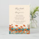 Den här vackra Boho-bröllopsinbjudan, som innehåller en bläck teckning av poppies-vilda blommor med rustiskt varmt färg, orange och teal, inspirerad av traditionell japansk konstteknik ukiyo-e eller japansk träblocksavtryck.