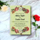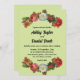 Den här blommigtens bröllopsinbjudan är perfekt för en modern blommigt bröllop. Den romantiska designen har röd, rosa och vita blommor med elegantens svarta typografi på gröntens bakgrund.