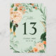 Vackra kort för bordsnummer är perfektens bordsdekanter för att behålla bröllop, förlovningsfest, repetitionsmiddag eller evenemang som organiseras. Dessa klassiska bordsnummer har mjuka pastelltoner och gröna moderna blommigtar med vattenfärg i persikofärgade, vita, krämelfenben, sage och en ljusare djupare grönt. Dessa kort från anpassningsbar bord samordnas med vår fullt botaniska boho blommigt samling av kontorsmateriel och pappra händelsevaror.
