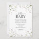 Skapa din egen personlig-babyduschinbjudan med modern minimalistisk design med boho stil botaniska blommigtar accents.