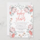 Denna stilfulla kvinnliga baby showerinbjudan presenterar vattenfärgblommor, och löv i dämpat skuggar av rosor och grått.
