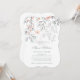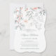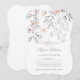 Denna känsliga botaniska bröllopsinbjudan design har nyanser av korall, persika, grå och blågrå, och har massor av blad, blommor och accenter.