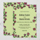Den här elegantens botaniska bröllopsinbjudan är perfekt för en modern blommigt bröllop. Den enkla designen har en botanisk trädgård av lila och magenta ro och grönt löv med elegantens svarta typografi på en sage grönt bakgrund.