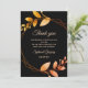 Med den här tackkortet som bakgrund har du en slående svart bakgrund med en aprikostext som ger en varm och inbjudande färgad. Fintvätt av löv i mjuka muterade jordtoner och jorda automatiska kopparskuggor framkallar höstens mysiga charm, medan det geometriska ramen i bränd orange och terracotta tillför en strålande men sofistikerad fläkt. Detta tackkort kompletterar perfekt ert hösttematiska bröllop, som fångar kärnan av en bohemisk chic firande. Tack vare det här kortet utstrålar du värme och elegans, vilket återspeglar den romantiska och moderna minimalismen i din speciella dag. Den här produkten är en del av en samling. Checka ut samlingen för att utforska andra produkter med samma design:) Om du vill ha en ny produkt kan du gärna meddela mig det. Jag är mer än lycklig för att hjälpa:)