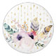 Den vackra vattenfärgsillustrationen Boho har blommor och fjädrar på vitt med guld-pilarnas bakgrund.