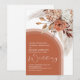 Dessa drömlika boho bröllopsinbjudningar är perfekta för ett höstbröllop. Inbjudningarna har ett boho-tema med nyanser av bränd orange, terrakotta, persika och kräm. En elegant visning av blommor, blad, pampasgräs och en modern bröllopsinbjudningsmall över valv med jordiga toner. Fotstilar, färg och storlek kan ändras genom att klicka på länken 'redigera med designverktyg' efter att ha anpassat.