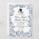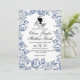 Elegant Bridgerton bröllopsinbjudan bröllop kort dammiga blått med vit och elegant manusjus. Klass och elegant, enkel och modern inbjudan.