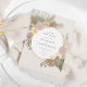 Denna moderna inbjudan från bröllop spara datum har genomsyrade vattenfärgsfunktioner som är av bohemisk karaktär, t.ex. rustiskt pampasgräs, orkidéer, handflatan-löv, mjältrör och proteablommor och en simulerad ram i guld runt cirkeln. Du kan ändra eller ta bort beige bakgrund bakom cirkeln om du vill ha vitt. Kopian är redigerbar och teckensnittet kan ändras. Kortet har en färgad bakgrund, lite mörkare än framsidan. Du kan byta tillbaka färg.