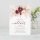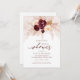 Den här rostbruna bohemiska pampasgräsbukett bröllopsfestinbjudan kommer säkert att imponera på bruden och hennes gäster! Den har vackra rostiga burgunder och ljusröda blommor ovanpå fluffigt akvarell-pampasgräs. Den är ihopparad med ett modernt handskriftskrift för en perfekt bohemisk look!