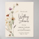 Boho bröllopsduschplakat. Denna stilrena och eleganta bröllopsduschplakat har vackra, handmålade akvarellvilda blommor arrangerade som en vacker krans med elegant kalligrafiskrift. Hitta matchande föremål i Boho Wildflower Bridal Shower Collection.
