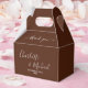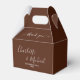 Thank your guests in style with our Boho Brown Script Minimalist Wedding Thank You Favor Boxes! These adorable boxes can be customized with the names of the bride and groom, as well as the date of your special day. Show your appreciation in a chic and personalized way.
