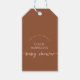 Boho Brown Terracotta Beige Script Baby Shower Presentetikett
