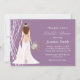 Fira i stil med den här eleganten Bho inbjudningskort för möhippan! Med en graciös gardin med pärlor och en brödande brud med brunetthår i en ömtålig klänning i snöre bröllop, är denna design vackert försedd med en lush bouquet av ro, pampas gräs, eukalyptus och ranunculus på lila.