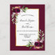 Boho burgundy blommigt guld bröllopsinbjudan vykort