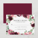 Kort för blommigt av elegant med en översta gräns av blommor, blommor av burgnypa och rosa med lövning av lush grönt. Anpassa svarskorten i bröllop genom att lägga till OSAN till datum. Den omvända sidan visningar en solid burgundisk bakgrund.