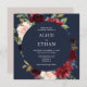 Inbjudan till elegant bröllop innehåller burgundi och marin blåa blommor med charmerande löv. Perfekt för fall- och vinterbröllop.