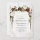 Inbjudan dina gäster i bröllop i stil med den här eleganten boho bohemian: bröllopsinbjudan till blommigt för fall eller vinter med en handmålad kanopi med burgig, rosa och vit vattenfärg ro med grönt. Anpassa all information om bröllop i en vanlig svart typografi. Kortets baksida har ett matchande beige struktur. Bästa önskemål för bröllop och giftermål! Designad av Susan Coffey.