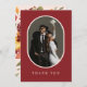 Boho Burgundy Rustic Blommigt Photo Bröllop Tack Kort