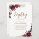 Boho burgundy vattencolor blommigt 80 födelsedagar inbjudningar