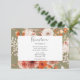 Brölloportets utformning har en bränd rost, persikofärgad och gräddvit blommigt ram med sage grönt grönt runt en vit fläck på en sage grönts bakgrund. Ett monogram kompletterar det enkla men elegant utseendet på inbjudan. Detta kort är en del av Boho Burnt Orange Fall Blommigt Arch Monogram Bröllop Suite med kort som skapats av enbart Farmhouse Press.